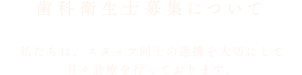 私は、国家資格を有する歯科衛生士が果たして“お手伝い”でいいのだろうか、アメリカでは人気職業の上位にランクインする歯科衛生士の日本における地位があまりに低いのではないだろうか、と日々考えております。歯科医療業界は歯科衛生士の不足や離職率の高さを嘆く前に、歯科衛生士の地位向上をすべきだと思います。そしてこの思いを共有してくれたうえで、日々向上を目指す“プロフェッショナルな”歯科衛生士とともに高いレベルの歯科診療を提供していきたいと考えております。