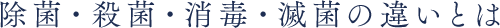 - そもそも、除菌、消毒、滅菌など…どれがどう違うのか、教えてください。